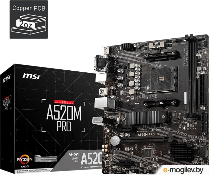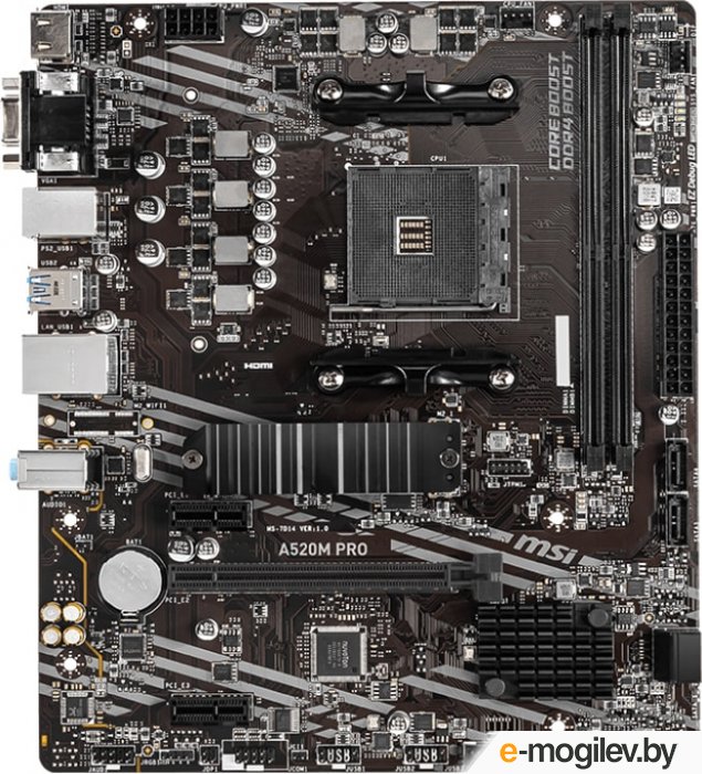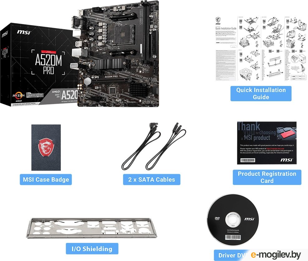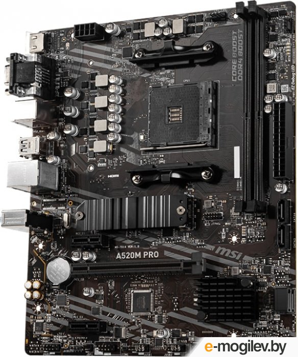 MB MSI A520M PRO Soc-AM4 (A520) 1xPCI-Ex16 1xPCI-Ex1 1xUltra M.2 2xDDR4 4600Mhz DP+HDMI+VGA mATX RTL