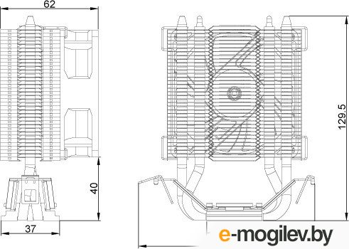 ОсновныеОхлаждение: воздушноеНазначение: для процессора Технические характеристикиСокет: LGA1155, AM3, AM2+, LGA775, LGA1156, AM2, 754, 939, 940Рассеиваемая мощность: 95 ВтМатериал радиатора: медь, алюминийТепловые трубки: 2Уровень шума: 25 dBA Размеры и весШирина: 127 ммВысота: 129.5 ммВес: 245 гГлубина: 62 мм ВентиляторКоличество вентиляторов: 1Подшипник: гидродинамический (FDB)