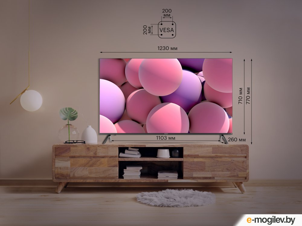 Общая информацияДата выхода на рынок: 2022 г. ОсновныеТип: ЖКЦвет рамки: черныйДиагональ экрана: 55"Цвет подставки: черныйРазрешение: 3840x2160 (4K UHD)Подставка: с двумя точками опорыПоддержка 3D: Smart TV: Цвет корпуса: черныйЧастота матрицы: 60 ГцПлатформа Smart TV: Android TVВерсия системы: Android TV 11Безрамочный дизайн: Изогнутый экран: Технические характеристикиРасширенный динамический диапазон (HDR): HDR10, HLGТип матрицы: VAЛокальное затемнение: Игровые функции: ФункцииФоновая подсветка: Управление голосом, голосовой поиск: пульт с микрофоном Прием сигналаТВ-тюнер: Аналоговый, DVB-C, DVB-T, DVB-T2Два тюнера: АудиосистемаСабвуфер: Звуковая панель (саундбар): Мощность звуковой системы: 24 ВтПоддержка аудиокодеков объемного звука: Поддержка HDMI eARC: ИнтерфейсыВыносной блок интерфейсов: AirPlay: Bluetooth: 5.1Wi-Fi: 802.11ac (Wi-Fi 5)Компонентный вход: Композитный вход: SCART: D-Sub (VGA): HDMI: 4Цифровой выход S/PDIF: оптическийВыход на наушники: 1Chromecast Built-in: USB: 2Ethernet (LAN): Версия HDMI: HDMI 2.0 Размеры и весШирина: 1229 ммГлубина (с учетом подставки): 260 ммТолщина панели: 65 ммВысота (с учетом подставки): 770 ммВес (с подставкой): 12.8 кгВысота (без подставки): 710 ммКрепление VESA: 200x200 Комплектация3D-очки: Smart-пульт: Настенное крепление: Пульт в комплекте: KIVI RC60 – серый с голосовым управлением и кнопками Netflix, YouTube МеткиМетки: 4K, недорогой 4K, с Android TV |