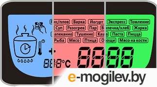 (стерилизация, мясо на кости, КонструкцияУправление и индикацияТаймер: Дисплей: жидкокристаллический (LCD)Установка температуры: Отсрочка старта: 24 чГолосовой гид: Функциональные особенностиСохранение пользовательских программ: 42Автоматические программы приготовления: 25Режим разогрева: 24 ч |