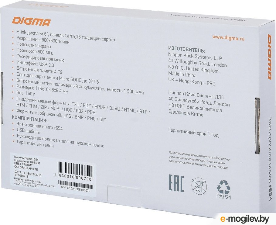 Поддержка AZW: Поддержка AZW3: Поддержка DjVu: Поддержка DOC: Поддержка DOCX: Поддержка CBR: Поддержка CBZ: Поддержка CHM: Поддержка ePub: Поддержка FB2: Поддержка HTML: Поддержка MOBI: Поддержка PDF: Поддержка PPT: Поддержка PPTX: Поддержка RTF: Поддержка TXT: Поддержка XLS: Поддержка XLSX: Поддержка фото форматов: JPEG, PNG, GIF, BMPПоддержка аудио форматов: Поддержка архивов: ZIPПоддержка видео форматов: