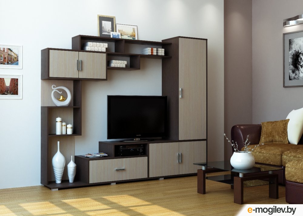 ОсновныеТип: стенкаНазначение: для жилой комнаты, для гостинойЦвет каркаса: дерево темное, коричневыйУстановка: напольнаяПолки: 7Материал каркаса: ЛДСПОттенок: венге, дуб белфортМатериал фасада: ЛДСПЦвет фасада: бежевый, дерево светлоеЗеркало: Распашные дверцы: Откидные/подъемные дверцы: Размеры и весШирина: 210 смВысота: 178.5 смГлубина: 40 смВысота ниши под телевизор: 85.8 смШирина ниши под телевизор: 120 см |