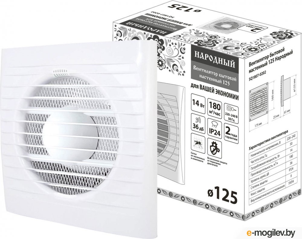 ОсновныеТип: осевойЦвет: белыйМощность: 14 ВтУправление: отдельная кнопка или выключатель светаКонструкция: накладнойНазначение: бытовой: ванная комната, туалет, кухняУровень шума: 36 дБПроизводительность: 180 куб.м/чУстановка: потолочная, настеннаяУстановочный диаметр воздуходува: 12.3 см Размеры и весШирина: 17.5 смВысота: 17.5 смВес: 0.55 кгГлубина: 8.4 см Особенности конструкцииМатериал: пластикСтепень защиты: IP24Съёмная внешняя панель: Исполнение/режим работы: вытяжной |