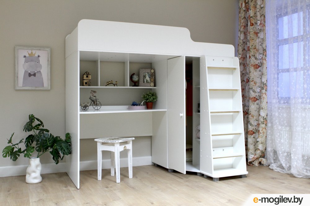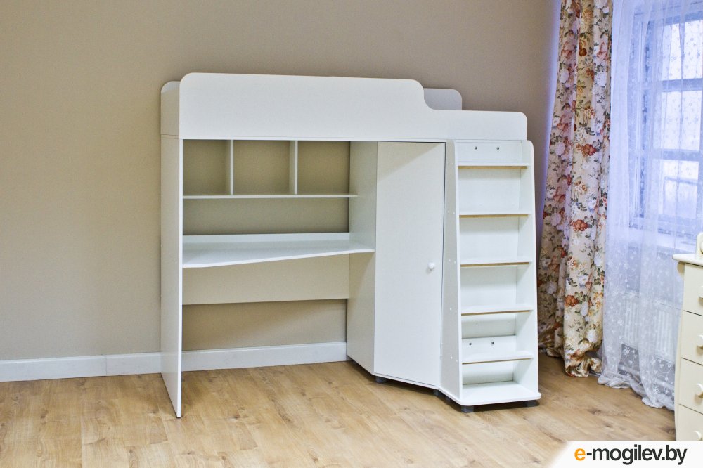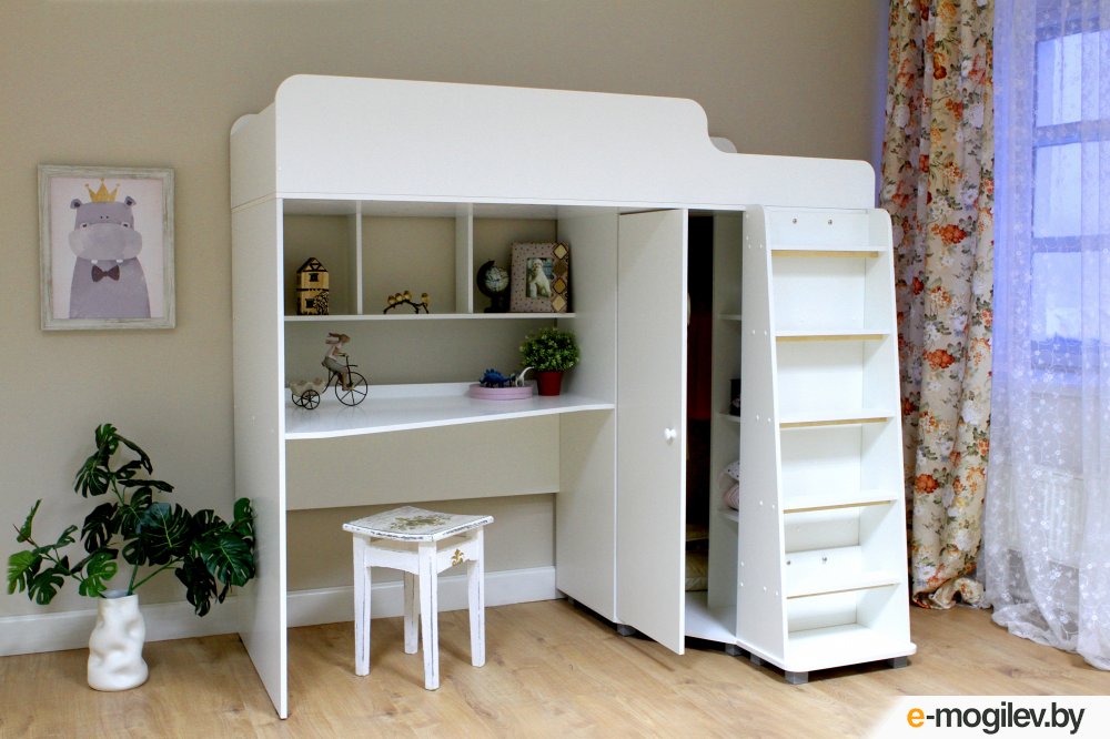 Кровать-чердак Красная звезда Р440 Капризун 5 со шкафом 180x80 (белый)